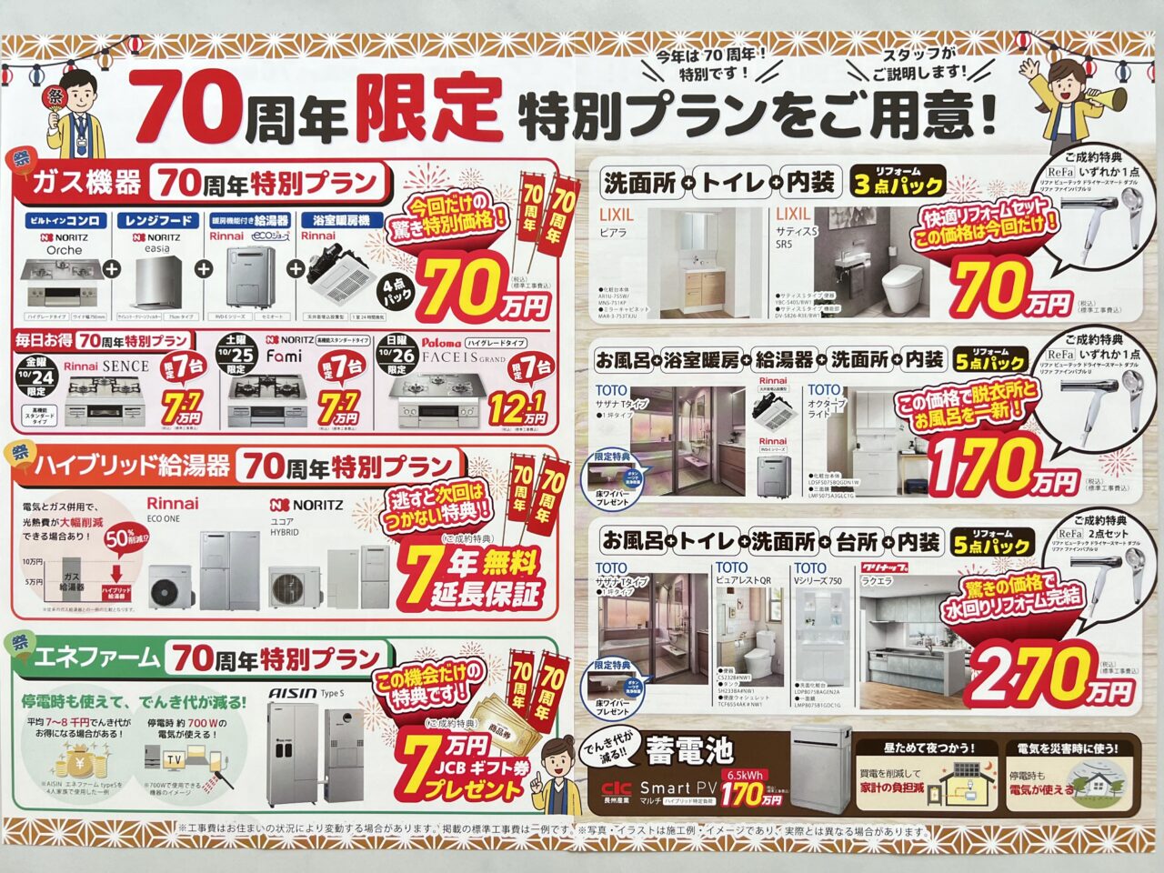 お得な70周年限定「特別プラン」に、