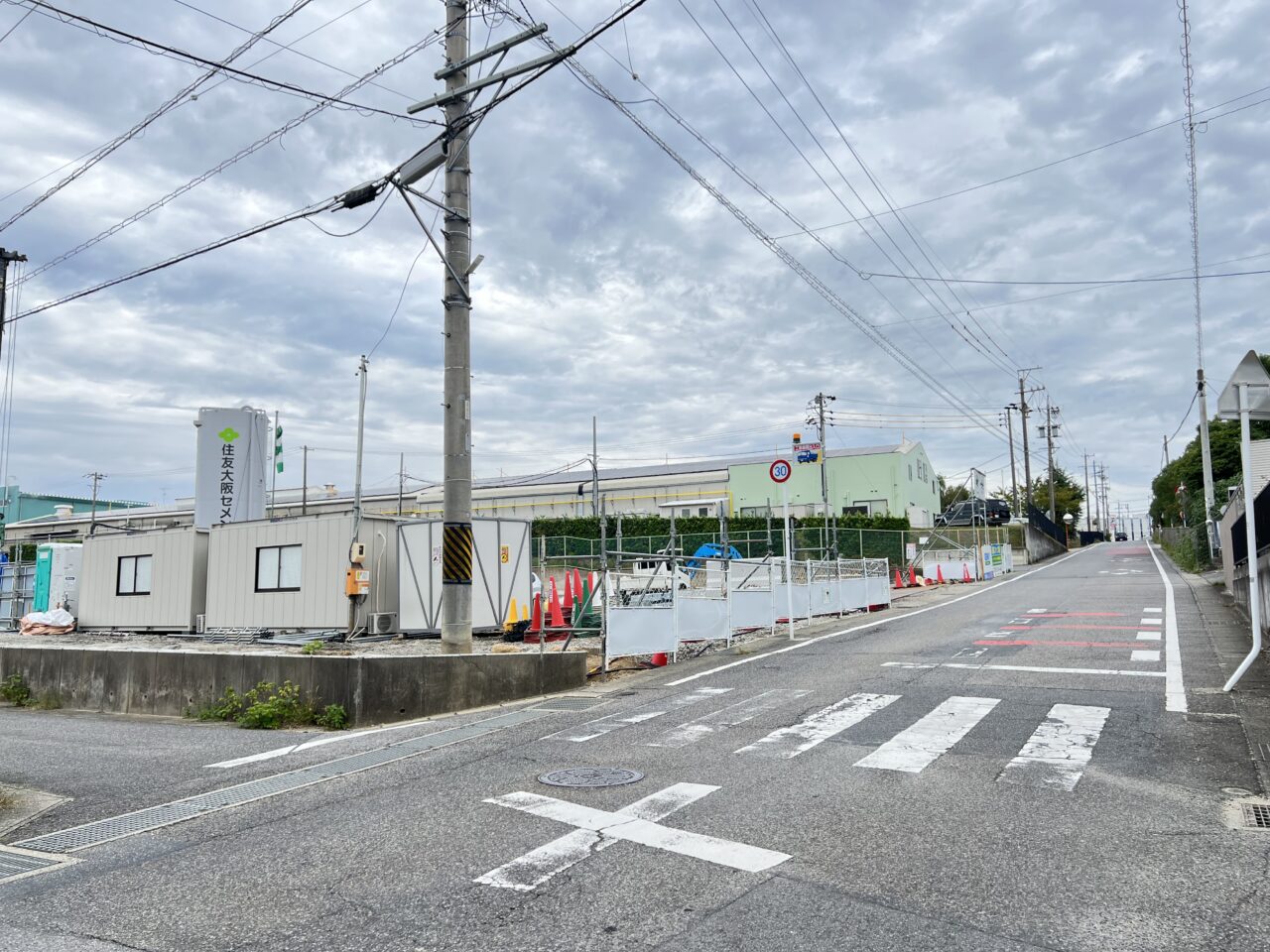 実際に様子を見に行ってみましたところ、「明和工業株式会社」の南西方向で2025年10月現在工事が行われており、「ゲンキー明和店 2026年春OPEN」の看板が出ていました。