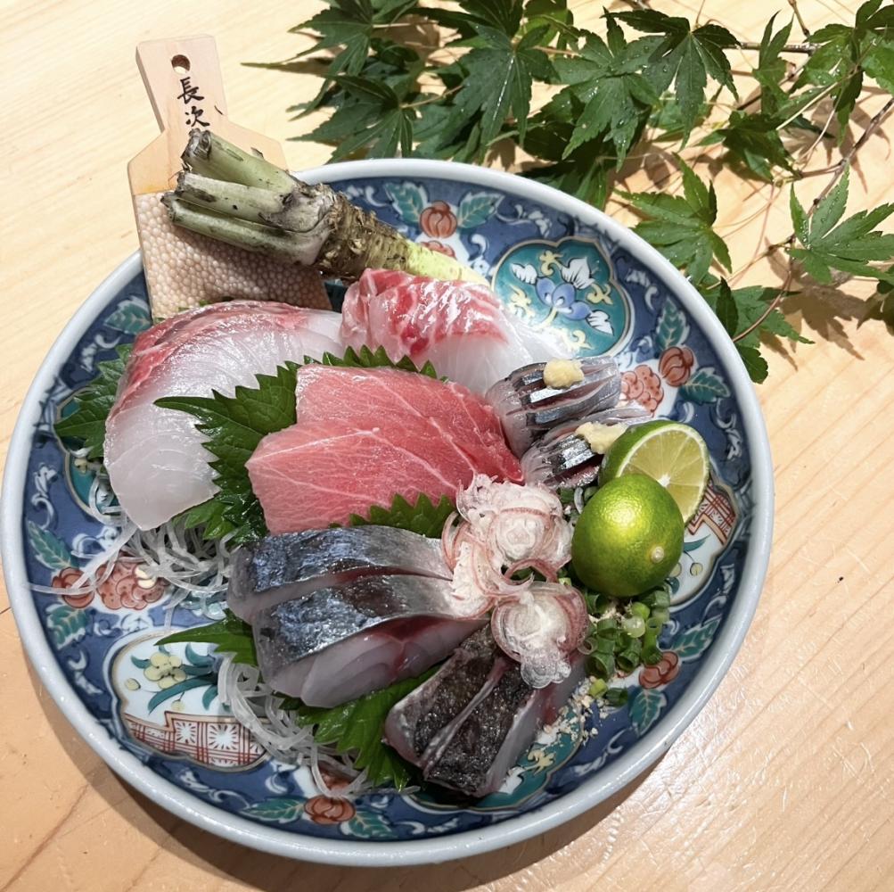 長崎県、対馬からその日水揚げされた魚を空輸で直送。その時に仕入れた魚だけを盛り合わせた特別な一皿です。