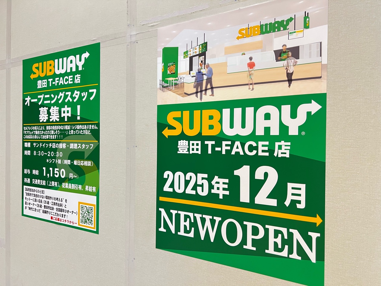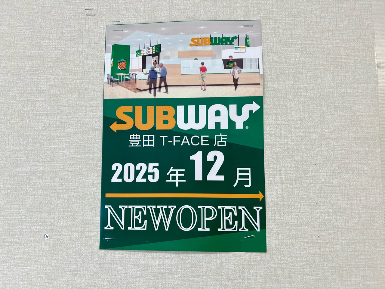 【豊田市】「おかえりサブウェイ♪」SUBWAY(サブウェイ)がT-FACEに12月オープン予定!