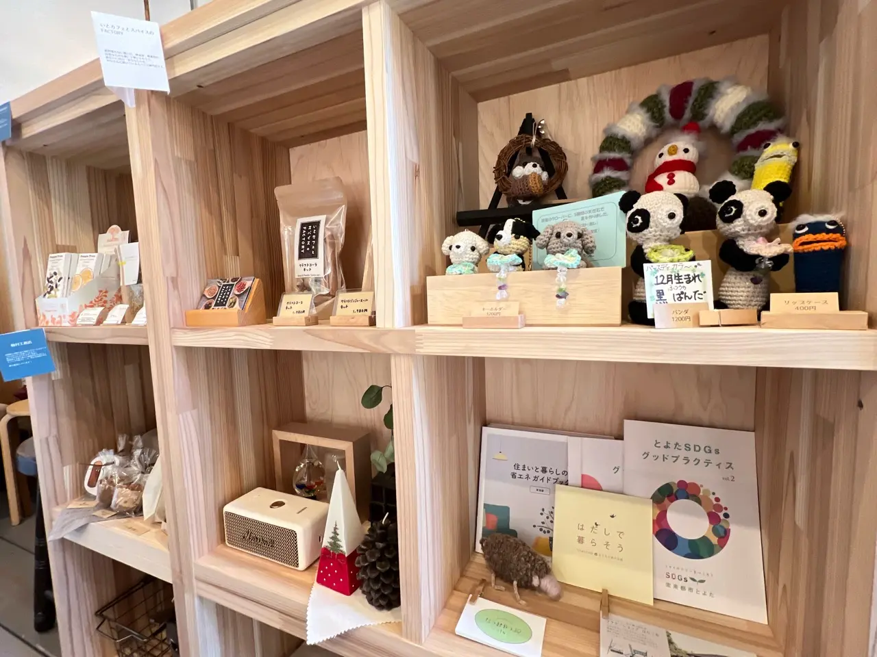 梅村工務店さんの新事務所 兼モデルハウスでもある建物は、暖炉のあるあたたかな雰囲気で、入口すぐの空間には、日々の暮らしにそっと寄り添う、身体にも環境にもやさしいアイテムが並びます。