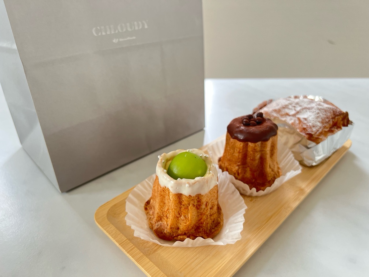 ケーキや焼き菓子をはじめ、カヌレ型のシュークリーム=シュヌレや幻のクリームパイなど、大人可愛いスイーツ店「CHLOUDY」。