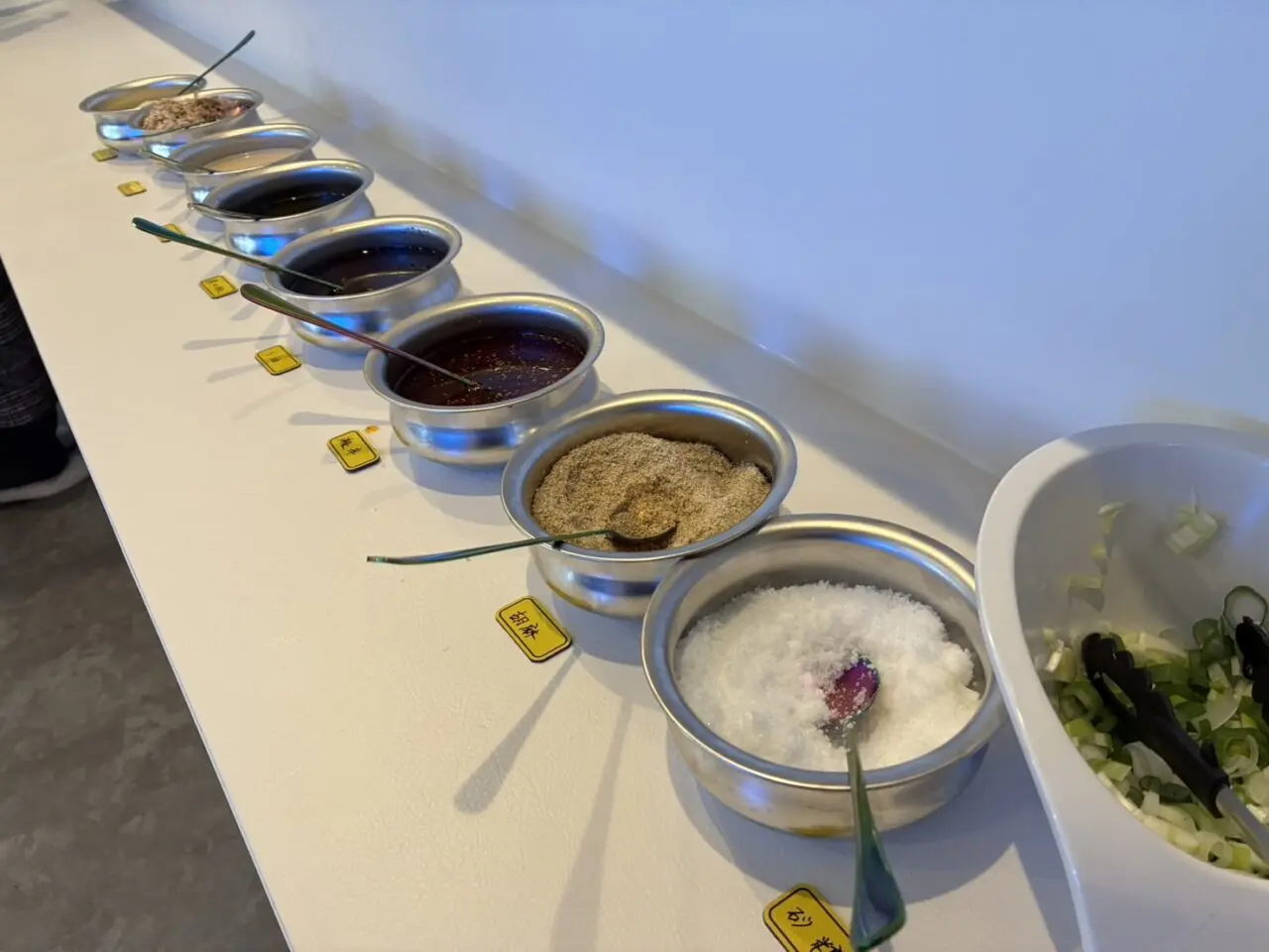 受け取り後は、調味料カウンターでお好みの味付けをプラスして、自分だけのオリジナル麻辣湯が完成しますよ。