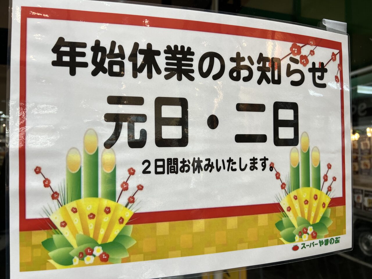 今年もあと3日ほど。気になるスーパーの年末年始をまとめてみましたので、ご活用ください。