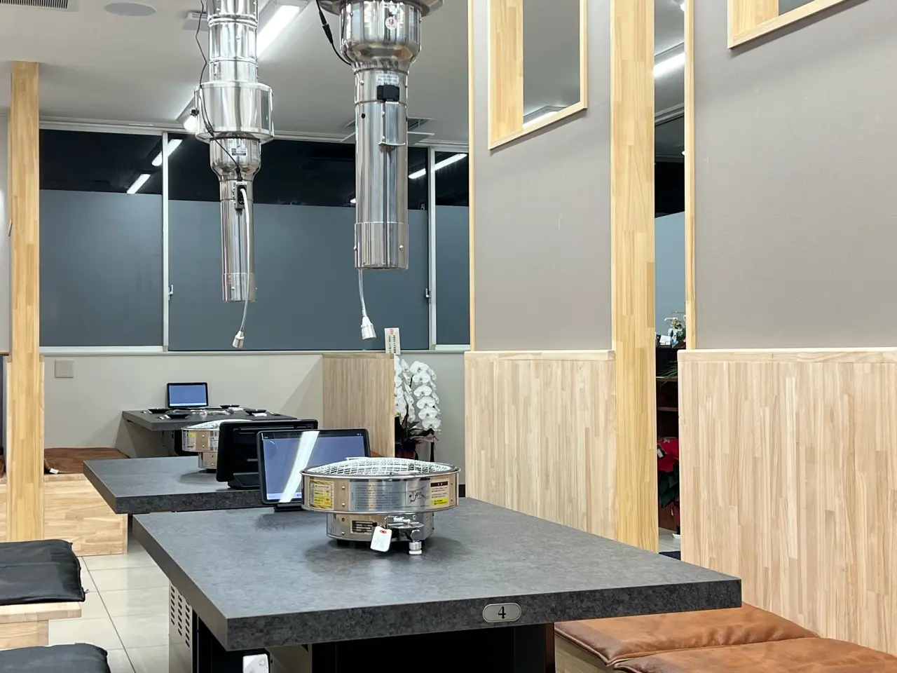 店内はシンプルなつくりながら、テーブル席が数卓と個室もあり。大衆的で入りやすい雰囲気の焼肉店ですが、テーブルごとに換気ダクトが設置されており、匂いが気になる方にも嬉しいポイント。
