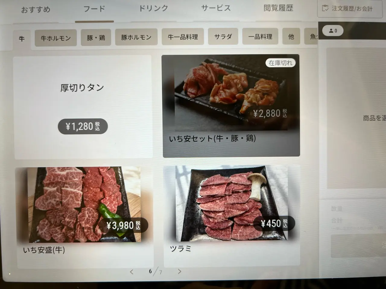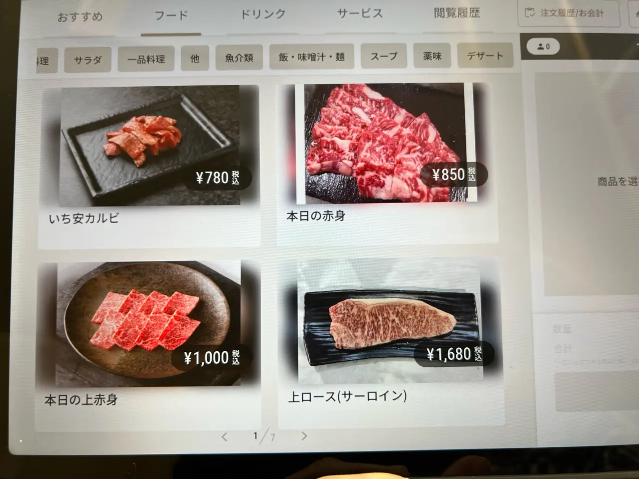 なお、タレや塩は卓上には置かれておらず、わさびやニンニクなどが必要な場合はタッチパネルから注文するスタイルです。
