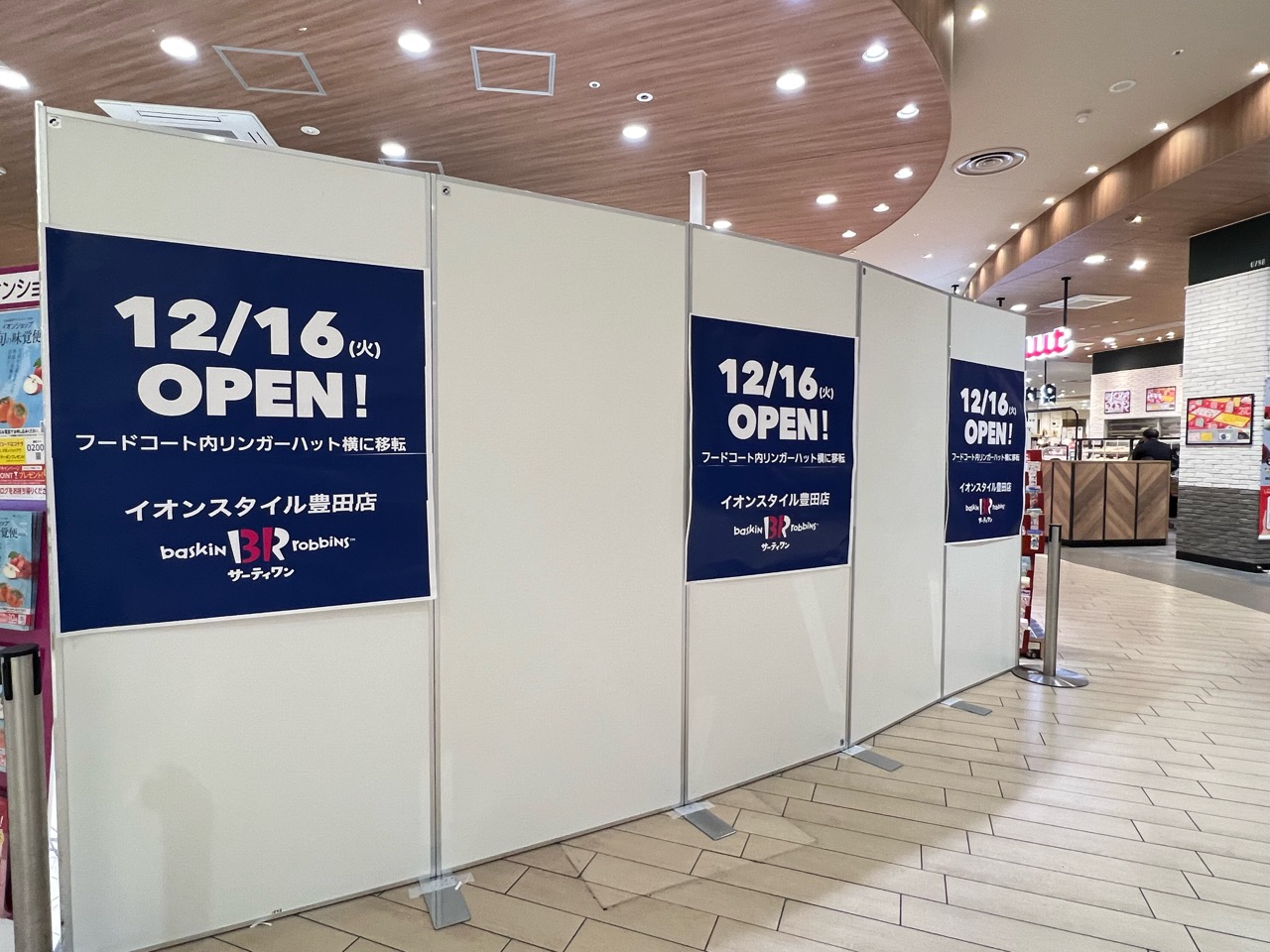 「サーティーワンアイスクリーム イオンスタイル豊田店」が2025年12月16日に移転オープンしているようです。