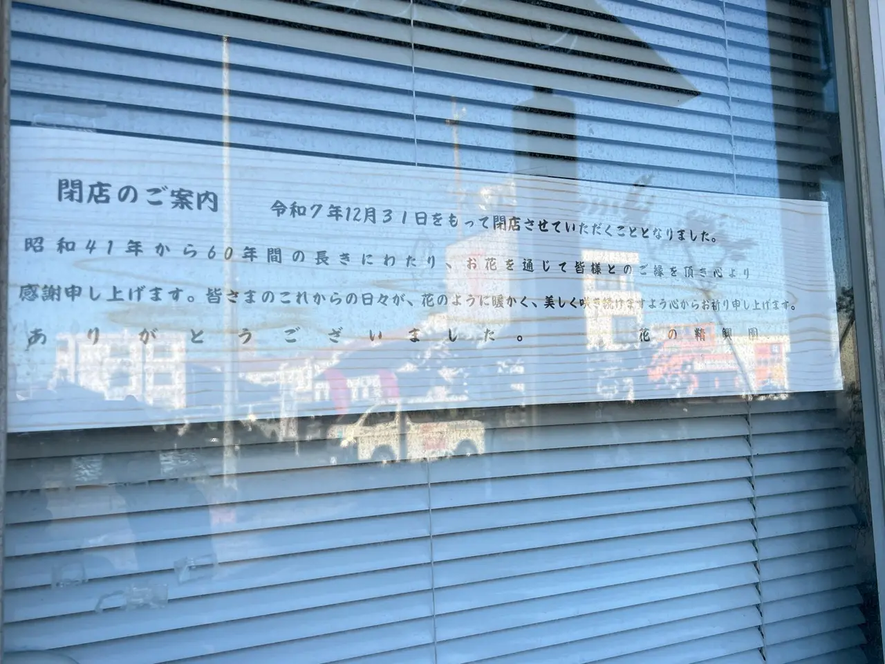 60年続いた老舗花屋 精興園が2025年12月31日をもって閉店するそうです。