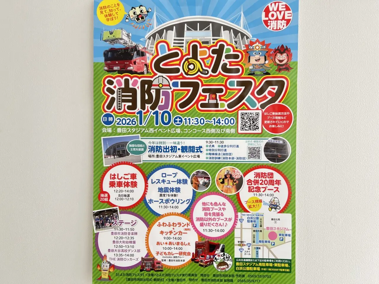 2026年1月10日、豊田スタジアムにて「消防出初・観閲式」「とよた消防フェスタ」が開催されます。