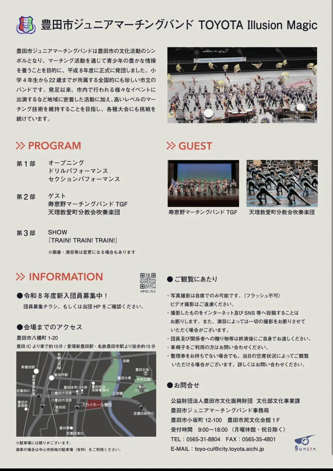 【豊田市】定員に達し次第、配布終了!! 豊田市ジュニアマーチングバンド「第26回定期演奏会」の整理券が配布中です。