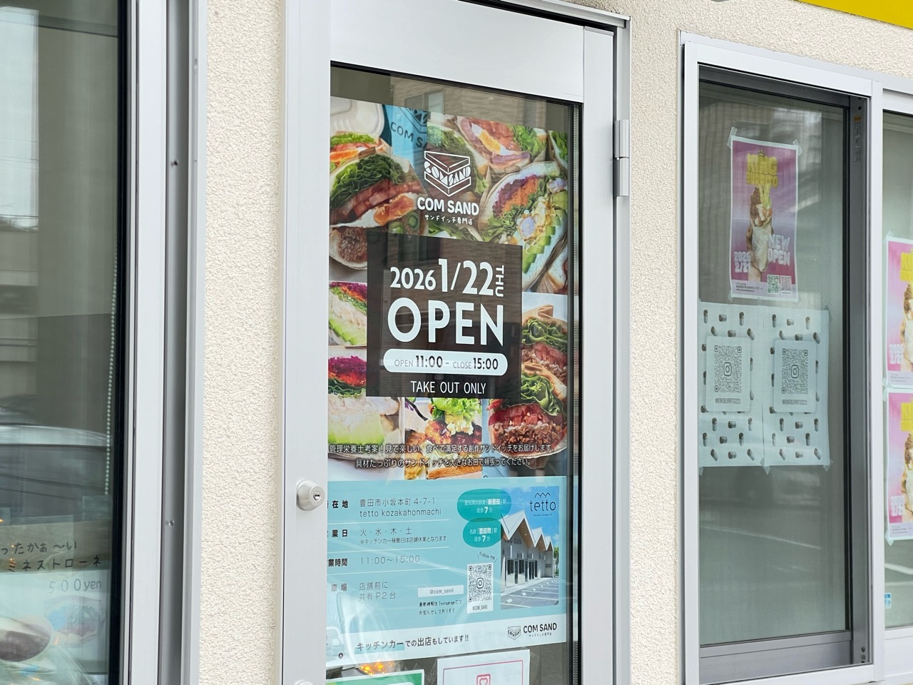 今までキッチンカーで出店していた、具だくさんサンドイッチ専門店「COM SAND」さんが、2026年1月22日に待望の実店舗をオープン♪