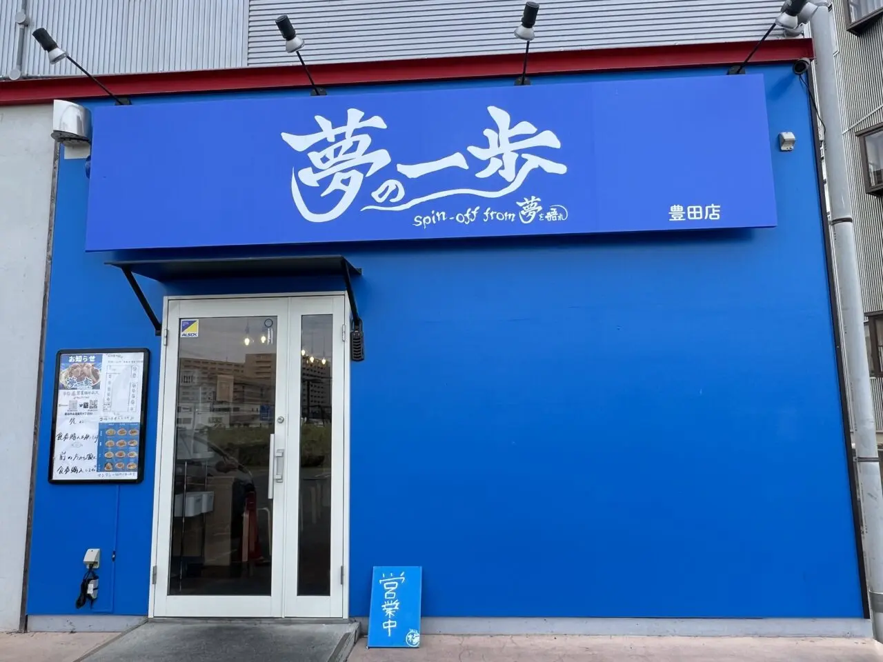 「夢の一歩豊田店」は、永覚新町の「赤から豊田2号店」などが入る「マシロビル」にある、青い外観が印象的なお店です。