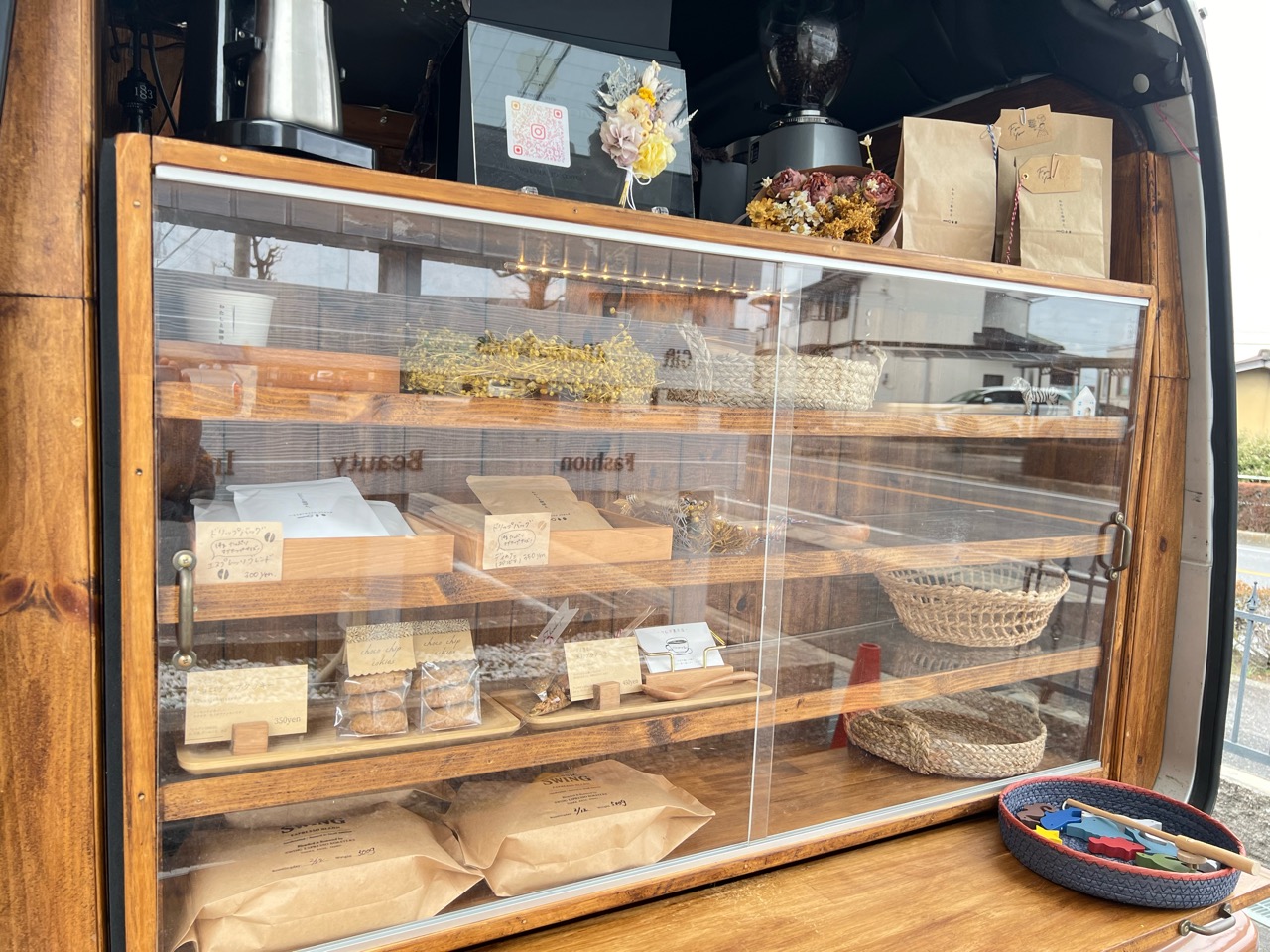 また、トランクにある棚には、ドリップコーヒーや焼き菓子、ハンドメイド雑貨などが日によって内容を変えて並ぶのだとか。こちらも楽しみの一つですね。