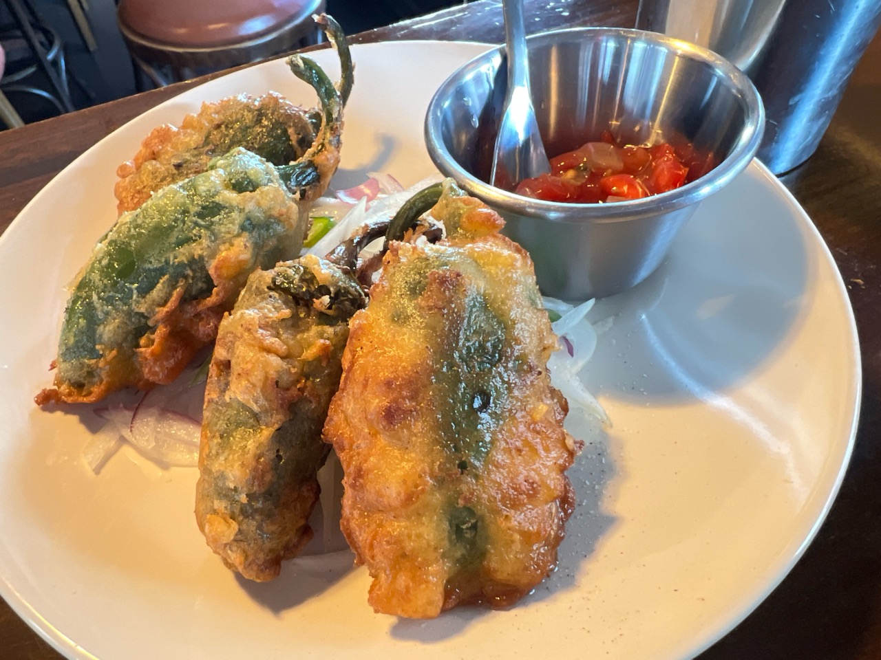 旭地区で栽培されたハラペーニョの中から、とろ〜りチェダーチーズがあふれ出す一品で、これはお酒が進むこと間違いなし!