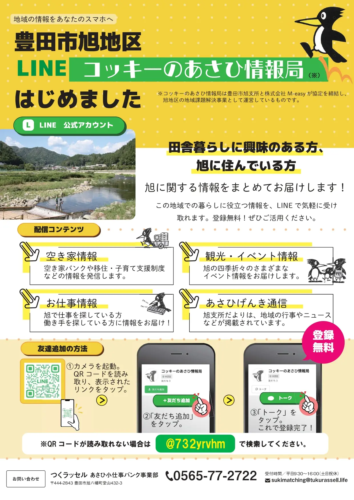 【豊田市】イベント・観光・お仕事・空き家、旭地区の情報をまるごとお届け!「コッキ―のあさひ情報局」LINEが開設
