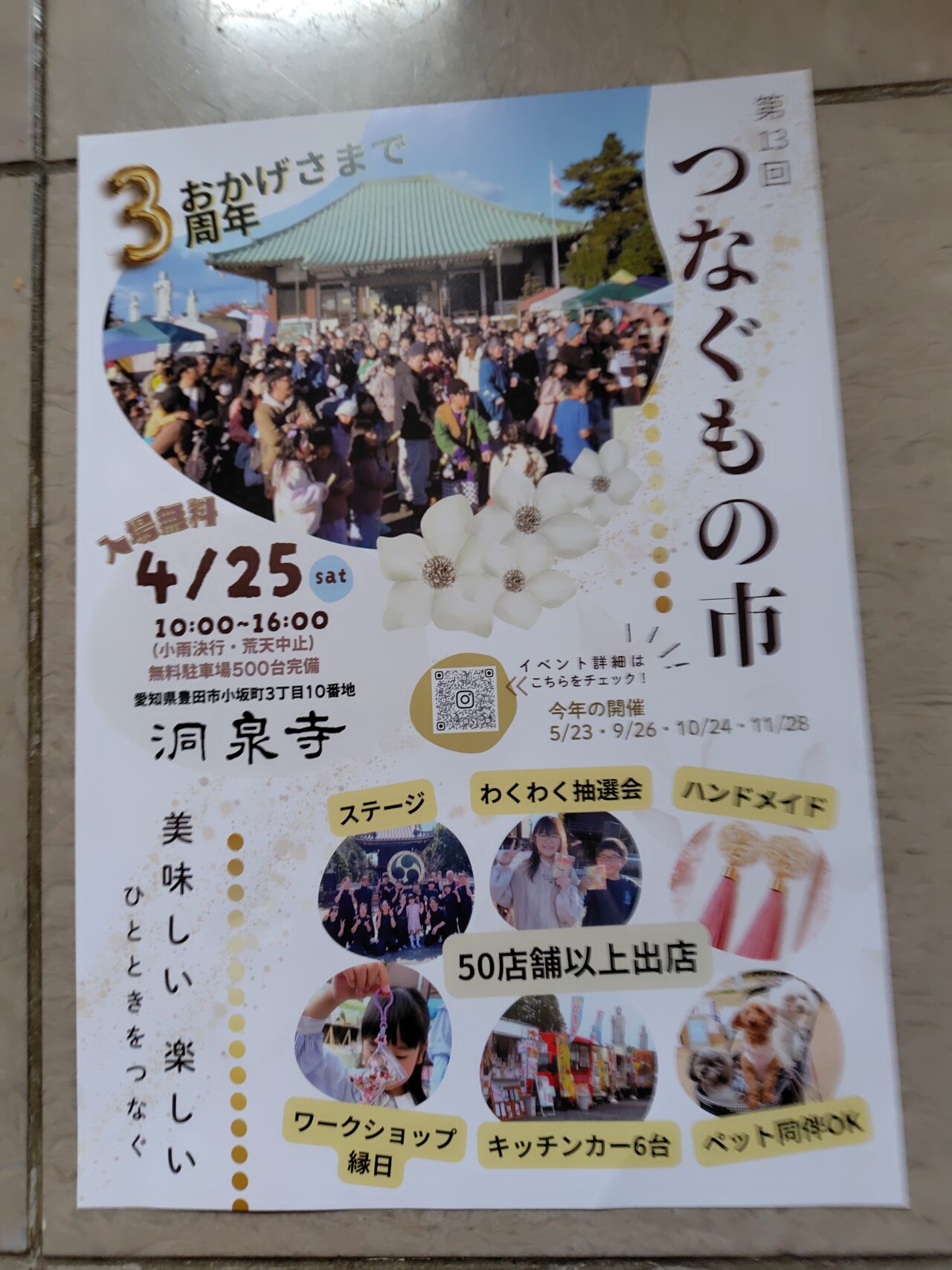 2026年4月25日に「第13回 つなぐもの市」が開催されるそうです。