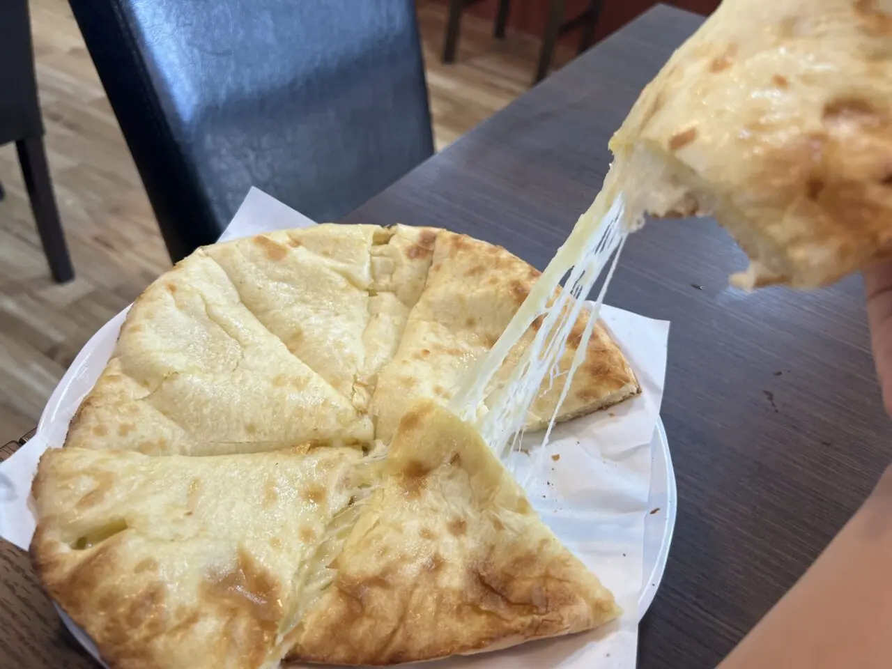 とろりとチーズがのびるチーズナンは、甘みのあるタイプ。